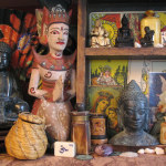 In 2007 I created a series of 21 photographs called “The ARTIfacts.” I arranged items that I had collected from my travels around the world and photographed them in a collage format. Each photograph represents several “close to my heart” objects as a history of my journey. The series is printed using archival pigment on canvas. You will see money from Afghanistan, a basket from Bali, two coins from China, a hand carved gourd from Machu Picchu Peru, an old painted fan from Spain, a ceramic vase from Costa Rica, and the Buddha from a yard sale in Ojai, to name only a few.